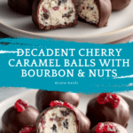 These Mouthwatering Cherry Caramel Extract Balls are a delightful no-bake treat combining creamy cream cheese, buttery sweetness, dried cherries, pecans, and a splash of bourbon. Coated in rich semi-sweet chocolate and garnished with dried cherries, these bite-sized balls offer a perfect balance of tart, sweet, and nutty flavors with a luscious caramel undertone.