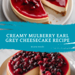 This Mulberry & Earl Grey Cheesecake combines the fragrant, citrusy notes of Earl Grey tea with the tart sweetness of fresh mulberries on a buttery graham cracker crust. Creamy and smooth, this rich cheesecake is enhanced by a vibrant mulberry sauce, making it a perfect elegant dessert for tea lovers and fruit enthusiasts alike.