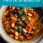 Keywords: Pasta e Fagioli, Italian soup, orzo soup, bacon soup, bean soup, quick dinner, stovetop soup, comfort food