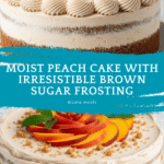 Keywords: Peach cake, brown sugar frosting, summer cake, fruit cake, moist cake, easy dessert, homemade frosting