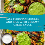 Keywords: Peruvian chicken, grilled chicken, turmeric rice, green sauce, cilantro sauce, easy chicken recipe, beginner friendly, Latin American cuisine
