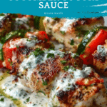This Pork Souvlaki recipe features tender, marinated lean pork shoulder chunks grilled to perfection with red peppers, served with a refreshing cucumber yogurt sauce and crisp lettuce. It’s a light, Mediterranean-inspired dish perfect for a flavorful and satisfying meal, served with warm flatbreads and optional chili sauce for added heat.
