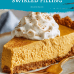 6. Assemble the Pie: Pour half of the pumpkin filling into the baked pie crust. Dollop some of the set-aside mascarpone mixture over the pumpkin layer. Pour the remaining pumpkin mixture on top and spoon the rest of the mascarpone filling in dollops. Use a knife or chopstick to gently swirl the layers to create a marbled effect.