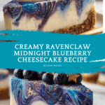 The Ravenclaw Midnight Blueberry Cheesecake is a stunning dessert that combines creamy richness with a vibrant blueberry swirl. Perfect for special occasions or when you want to treat yourself, this cheesecake delivers both beautiful presentation and delicious flavor.