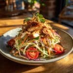 This Satay Crispy Rice Salad is a delightful fusion of textures and flavors, combining crunchy golden rice with fresh herbs, chicken, and a creamy peanut dressing. It’s a perfect light meal that’s satisfying and packed with vibrant ingredients.