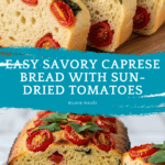 Keywords: Caprese bread, savory bread, mozzarella bread, sun-dried tomato bread, basil bread, Italian bread, easy bread recipe