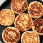 - Fry the Scones: Heat a large heavy frying pan (such as cast iron) over medium heat. Add 1 tbsp butter for frying. Place scones in the pan ensuring space to flip them. Cook each side for 3-5 minutes until crispy and golden brown.