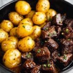 PrintSlow Cooker Garlic Butter Beef Bites with Potatoes Recipe