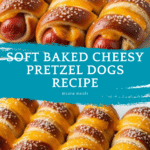 Soft Baked Cheesy Pretzel Dogs are a delightful twist on the classic pretzel, featuring warm, soft pretzel dough wrapped around a juicy hot dog with melted cheddar cheese inside. Perfectly boiled in baking soda water for that authentic pretzel crust and baked to golden perfection, these savory treats are great for parties, game days, or a fun family snack.