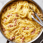 Spaghetti Carbonara is a classic Italian pasta dish known for its creamy, cheesy sauce made without cream. With crispy pancetta, rich egg yolks, and sharp Pecorino Romano, this recipe delivers comfort and elegance in every bite.