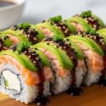 Spicy Salmon Sushi Bake is a comforting and easy-to-make dish that combines the flavors of classic sushi with the convenience of a baked casserole. Creamy, spicy salmon rests on a bed of seasoned sushi rice, topped with melted cheese and served with crispy seaweed squares for scooping. It’s perfect for sharing or a flavorful weeknight meal.