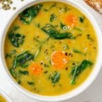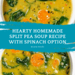 Keywords: split pea soup, vegetarian soup, healthy soup, green split peas, potato soup, spinach soup, easy soup recipe, stovetop soup