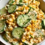 Keywords: street corn salad, creamy cucumber salad, grilled corn recipe, summer salad, Greek yogurt dressing, cilantro cucumber salad