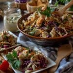This Thai Chicken Salad is a vibrant and refreshing dish perfect for a light lunch or dinner. It combines tender shredded chicken with crisp vegetables and a flavorful tangy dressing, finished with crunchy cashews and fresh coriander for an authentic taste.