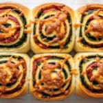 These Vegan Caramelized Onion & Spinach Pizza Rolls are a delicious plant-based twist on classic pizza, featuring a soft homemade dough filled with sweet caramelized onions, sautéed spinach, garlic, and marinara sauce. Perfect as a savory snack or appetizer, these rolls are baked until golden and topped with a sprinkle of nutritional yeast for an extra cheesy flavor without dairy.
