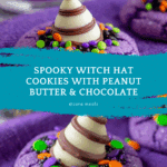 Witch Hat Cookies are a fun and festive treat perfect for Halloween celebrations. These peanut butter cookies are tinted purple, adorned with sprinkles, and topped with a chocolate kiss to create a charming witch hat design. They’re easy to make and delightful to eat, sure to be a hit with both kids and adults.